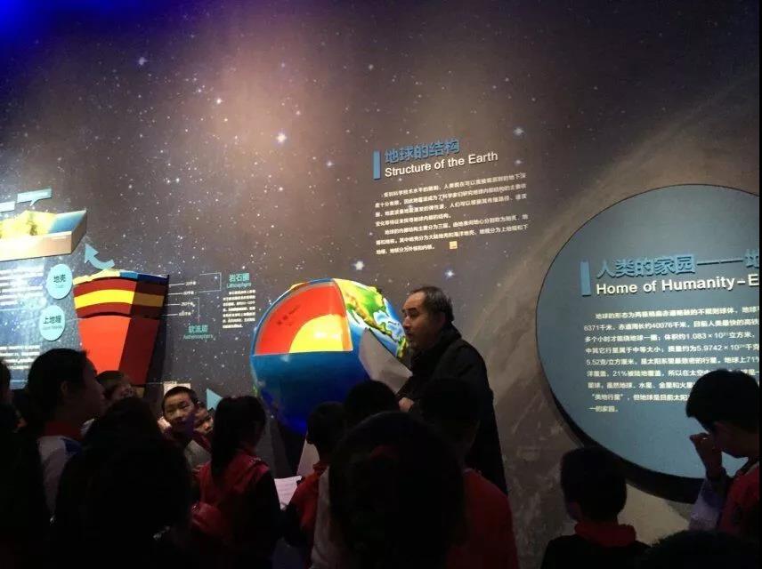 排队走进地质博物馆,我们全被正在播放的电影迷住了。过了一会儿,我们进入了第一个展厅,这里介绍的是地球和太阳系。刘老师给我们讲述了太阳的形成和地球内部的构造。他生动的讲解,让我们知道了宇宙中的沙尘和物质合到了一块儿,形成了太阳;地球的外部叫地壳,地壳里面是地幔,地幔里面就是地球的中心——地核了;原来是地球的板块运动形成了世界最高峰——珠穆朗玛峰。我不仅看到了一些地球的矿物质标本,还了解了许多关于水晶洞的知识。这儿仿佛为我开启了新世界的大门啊!